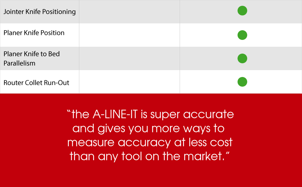 You can use this tool to do the basic testing as well as the advanced stuff. I had little hope in getting my dewalt table saw dead accurate. I almost had accepted that it just wasn’t possible to achieve such accuracy. This tool allowed me to adjust it to the best it could possibly be.